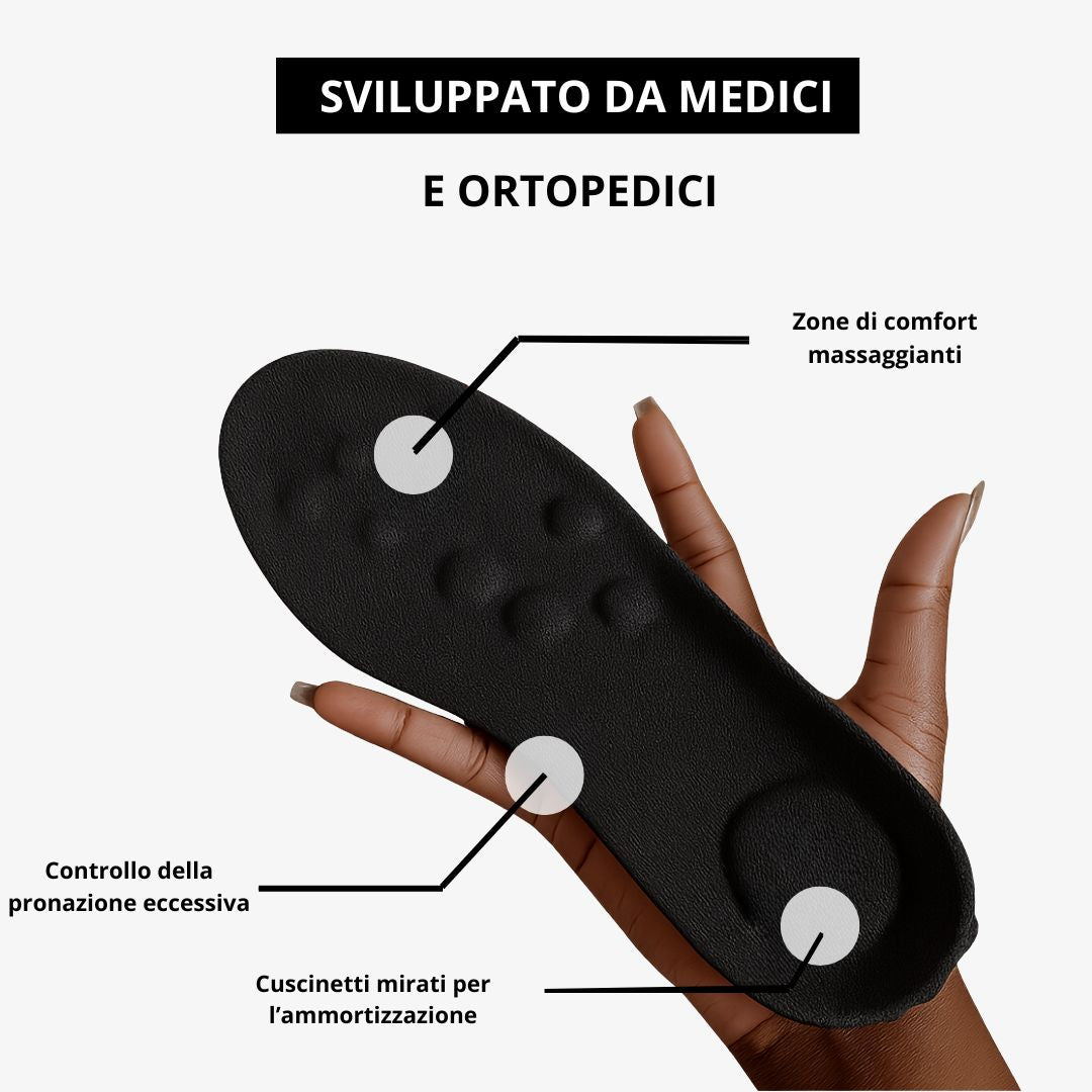Un plantare ben studiato assorbe gli impatti, ridistribuisce la pressione e offre un supporto reale per l’arco plantare, garantendo un comfort immediato.